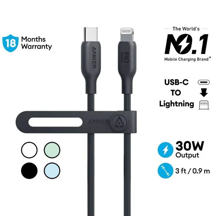 کابل انکر اصلی نسل پنج | تایپ سی به لایتنینگ 90 سانتی Anker 544 USB-C to Lightning Cable مدل A80B1 با ویژگیهای منحصر به فرد خود، از جمله سرعت بالا، سازگاری گسترده، کیفیت ساخت بالا و طراحی شیک، یکی از بهترین انتخابها برای استفاده روزمره شماست. با خرید این کابل، نه تنها از کیفیت بالای آن بهرهمند خواهید شد، بلکه از خدمات و گارانتی معتبر انکر نیز بهرهمند میشوید. همین حالا اقدام کنید و تجربهای بینظیر با کابل انکر داشته باشید!