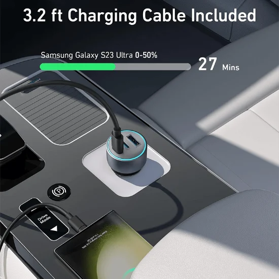 توان کلی خروجی این شارژر فندکی ۶۷ وات است که توسط دو پورت TYPE-C و یک پورت USB-A انتقال پیدا میکند، اما خروجی پورتها یکسان نیست. توان خروجی تایپ سی معادل ۶۷ وات و USB-A معادل ۲۲.۵ وات شارژ را در اختیار شما قرار میدهد، همچنین قابل ذکر است که از تکنولوژی PD و PPS برای افزایش سرعت، کیفیت و انتقال شارژ در آن استفاده شده است. تکنولوژی PPS سامسونگ کمک میکند که هر دستگاه باتوجه به میزان نیاز خود انرژی دریافت کند.